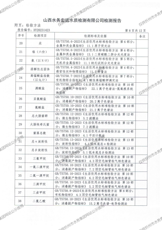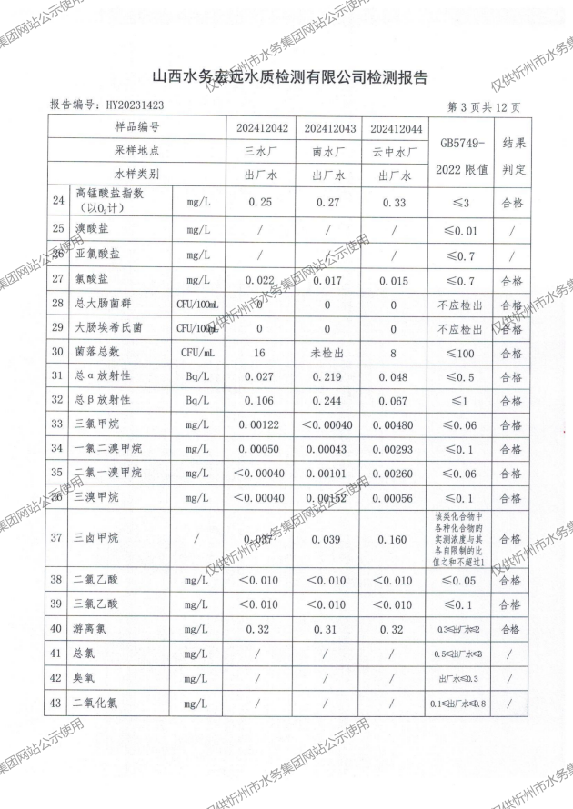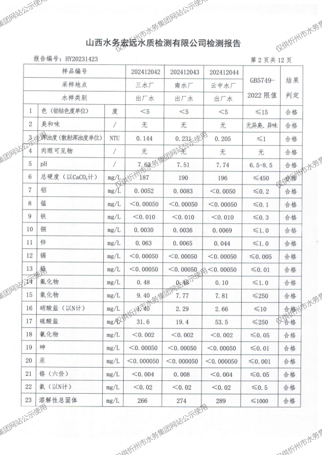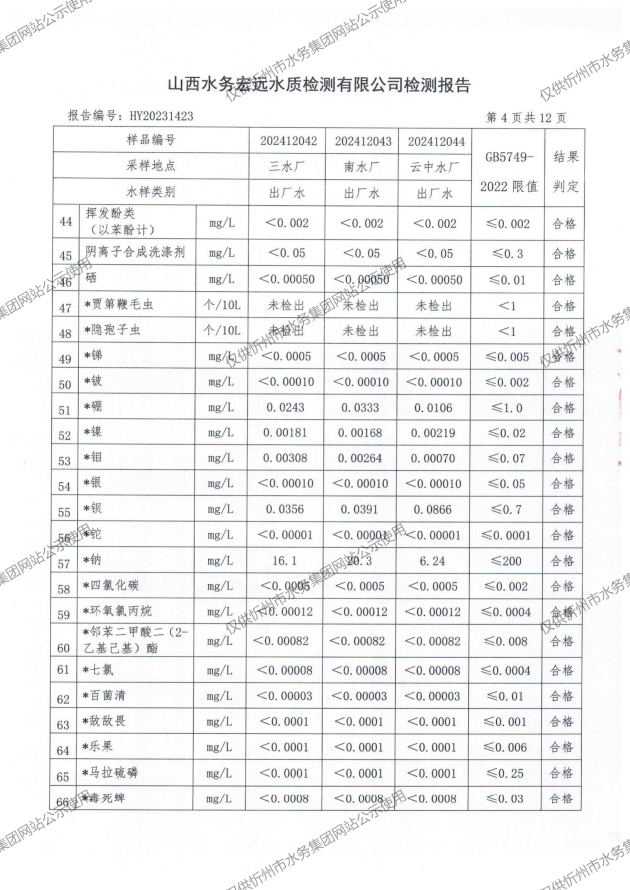 2024年忻州城區(qū)公共供水南水廠、三水廠、云中水廠出廠水97項(xiàng)水質(zhì)全分析