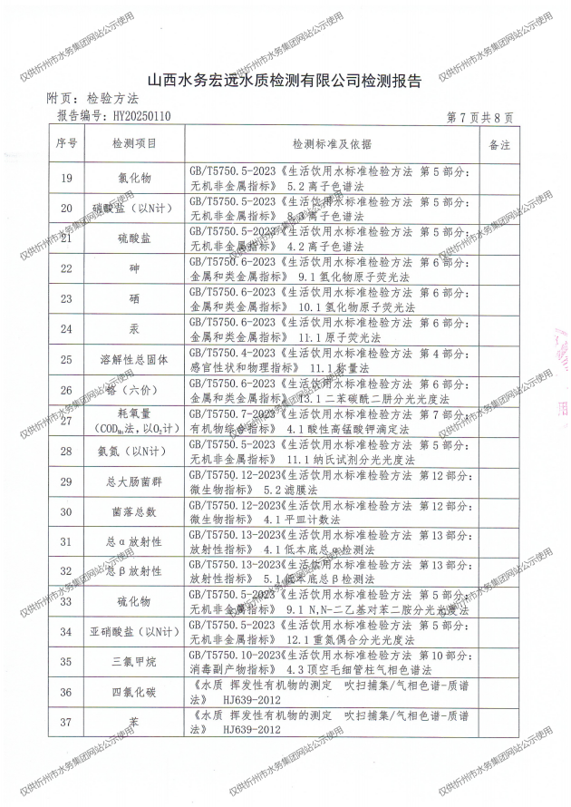 忻州城區(qū)公共供水水源水、出廠水、管網(wǎng)水、管網(wǎng)末梢水2025年4月份水質(zhì)信息公示
