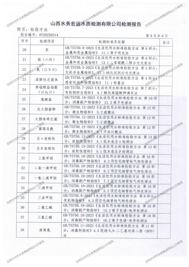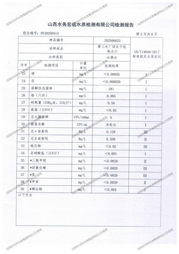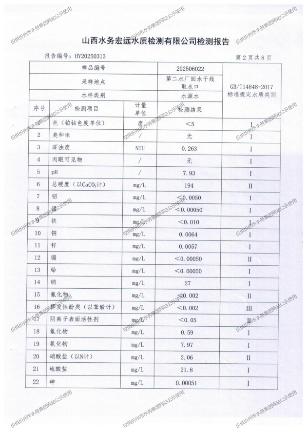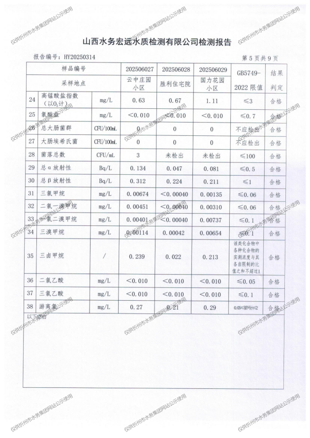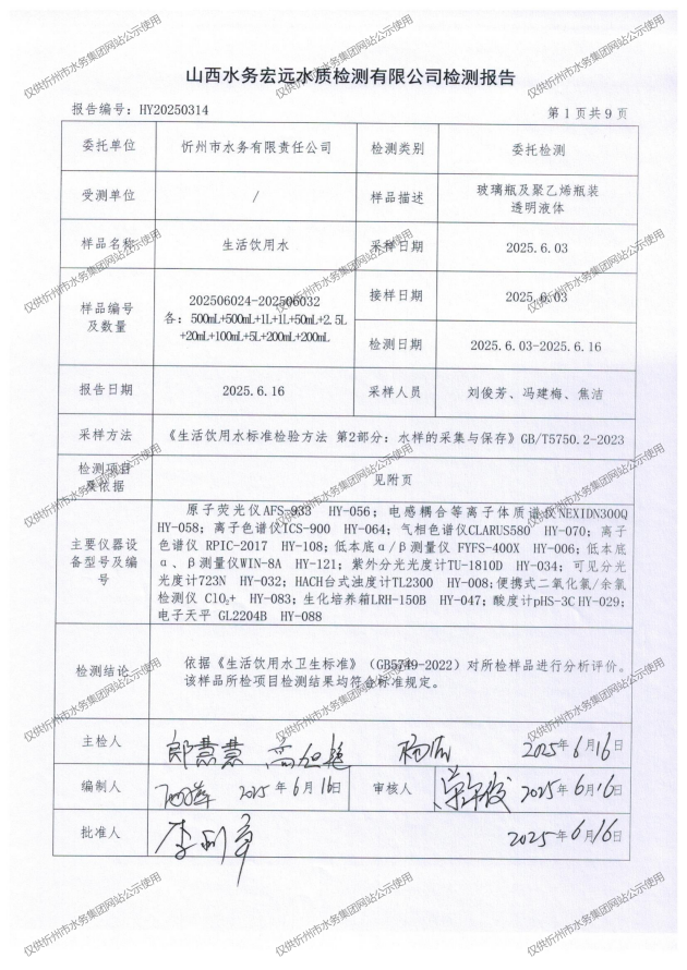 忻州城區(qū)公共供水水源水、出廠水、管網(wǎng)水、管網(wǎng)末梢水2025年6月份水質(zhì)信息公示