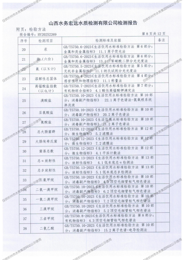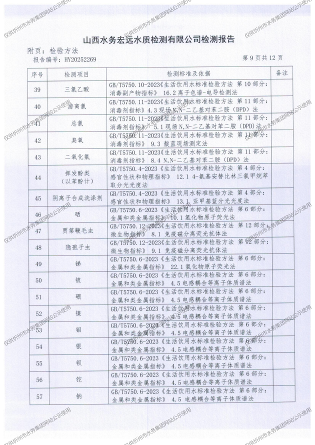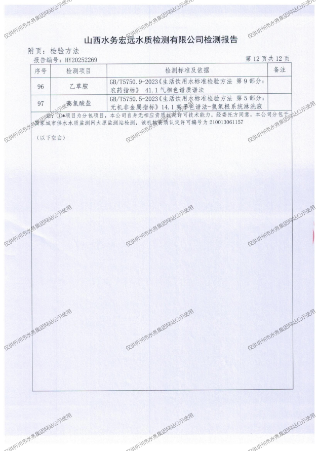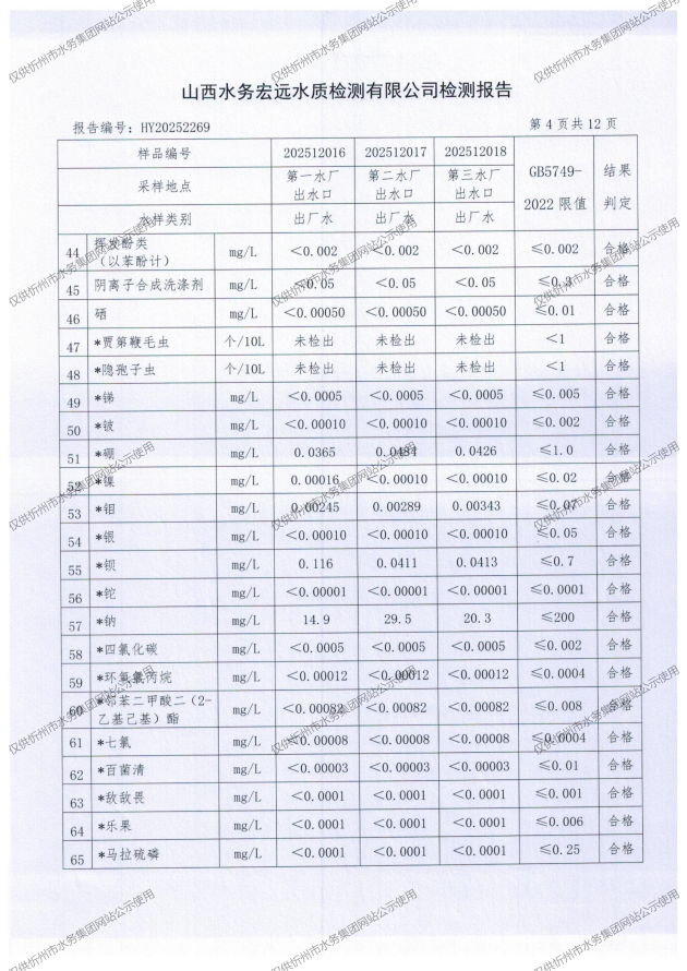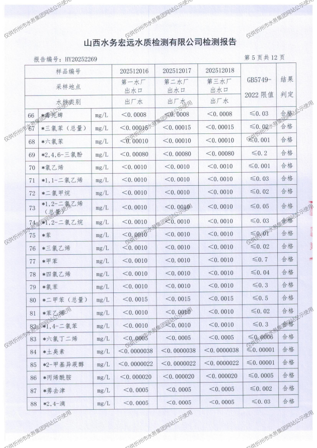 2025年忻州城區(qū)公共供水南水廠、三水廠、云中水廠出廠水97項水質(zhì)全分析
