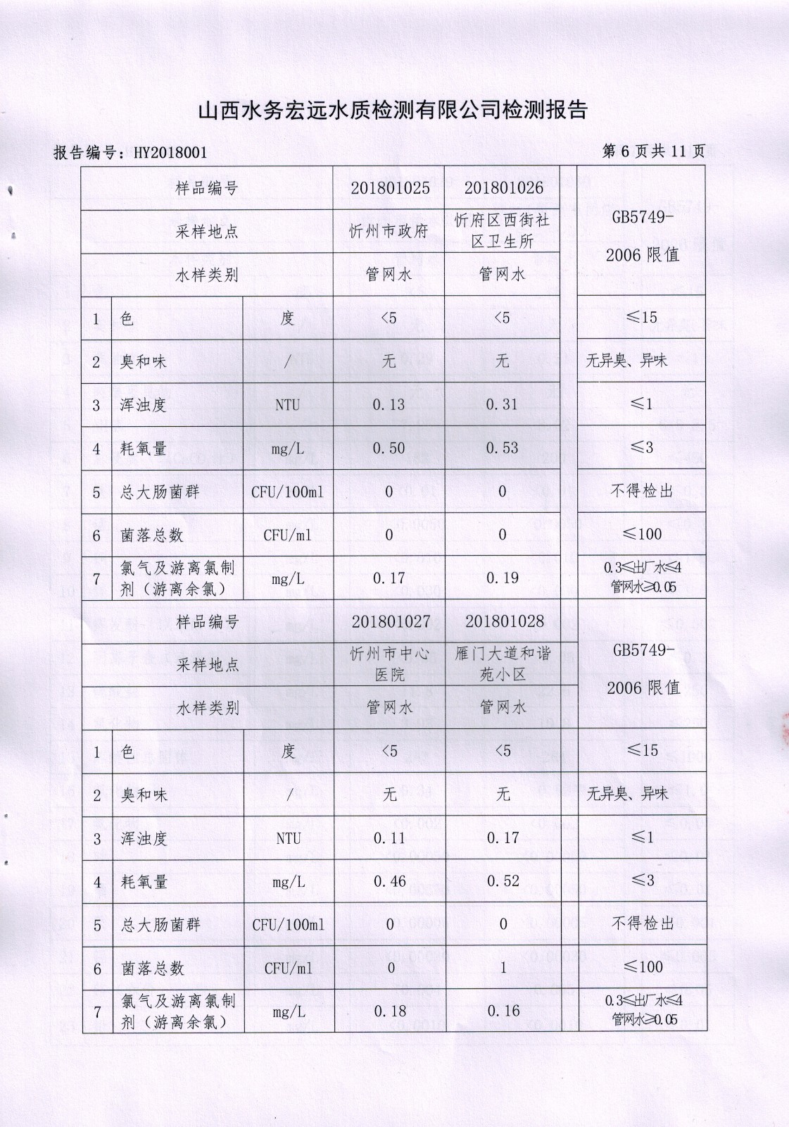忻州城區(qū)公共供水水源水、出廠水、管網(wǎng)水、管網(wǎng)末梢水2018年1月份水質(zhì)信息公示