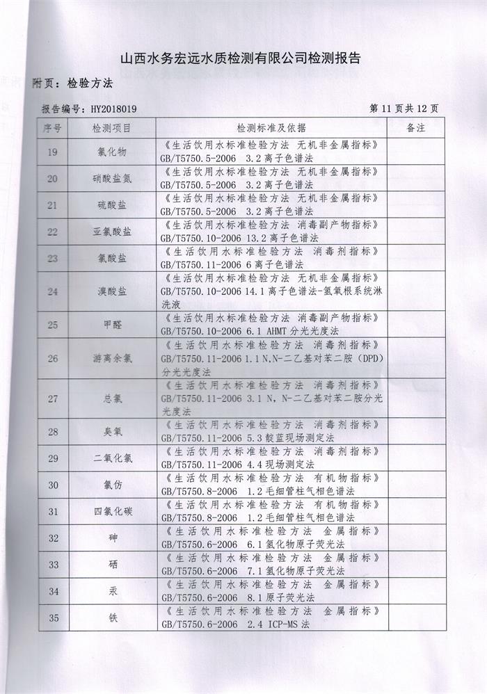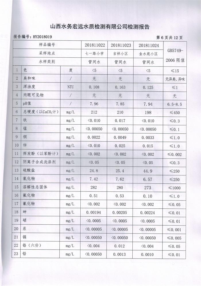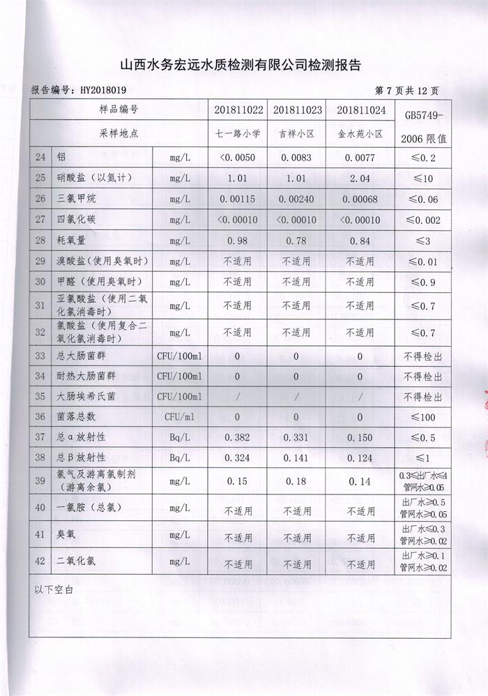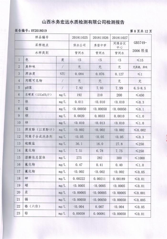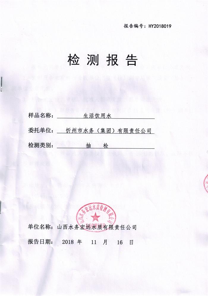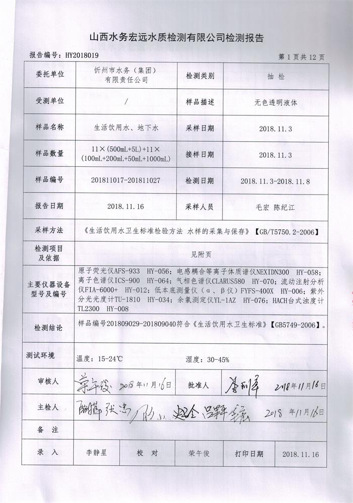 忻州城區(qū)公共供水水源水、出廠水、管網水、管網末梢水2018年11月份水質信息公示